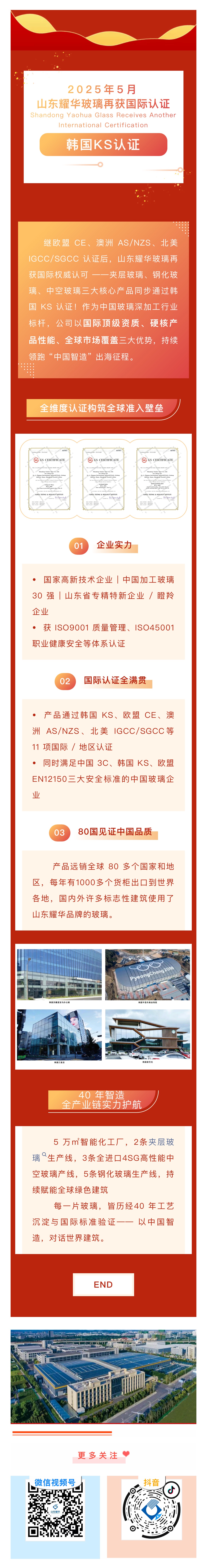 40 年匠心智造,山東耀華三大玻璃產(chǎn)品通過韓國 KS 認(rèn)證,全球市場再樹標(biāo)桿!