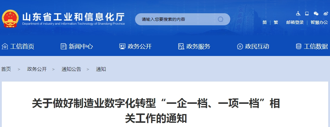 根據(jù)《山東省制造業(yè)數(shù)字化轉(zhuǎn)型提標(biāo)行動(dòng)方案(2023-2025年)》《全省規(guī)上工業(yè)企業(yè)數(shù)字化轉(zhuǎn)型工作方案(2024-2026年)》相關(guān)要求,為精準(zhǔn)推動(dòng)工業(yè)企業(yè)數(shù)字化轉(zhuǎn)型普及提升,現(xiàn)就制造業(yè)數(shù)字化轉(zhuǎn)型“一企一檔、一項(xiàng)一檔”工作通知如下: